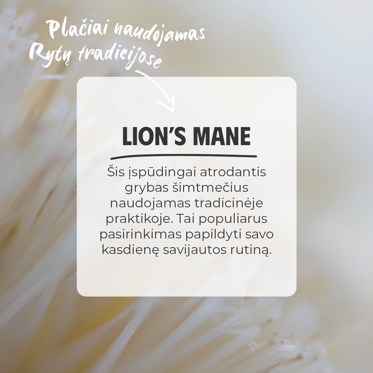 Liūto karčiai (Hericium erinaceus) – grybas, turintis ilgą vartojimo istoriją Rytų tradicijoje.