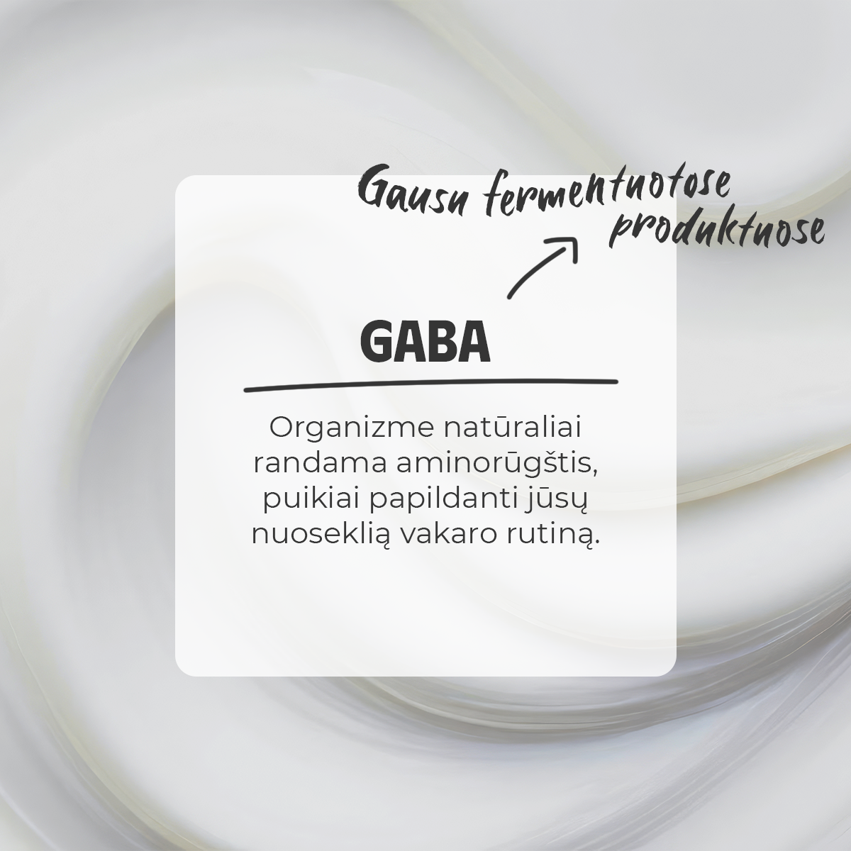 - GABA (gama-aminosviesto rūgštis) – organizme natūraliai randama aminorūgštis, puikiai papildanti jūsų nuoseklią vakaro rutiną.